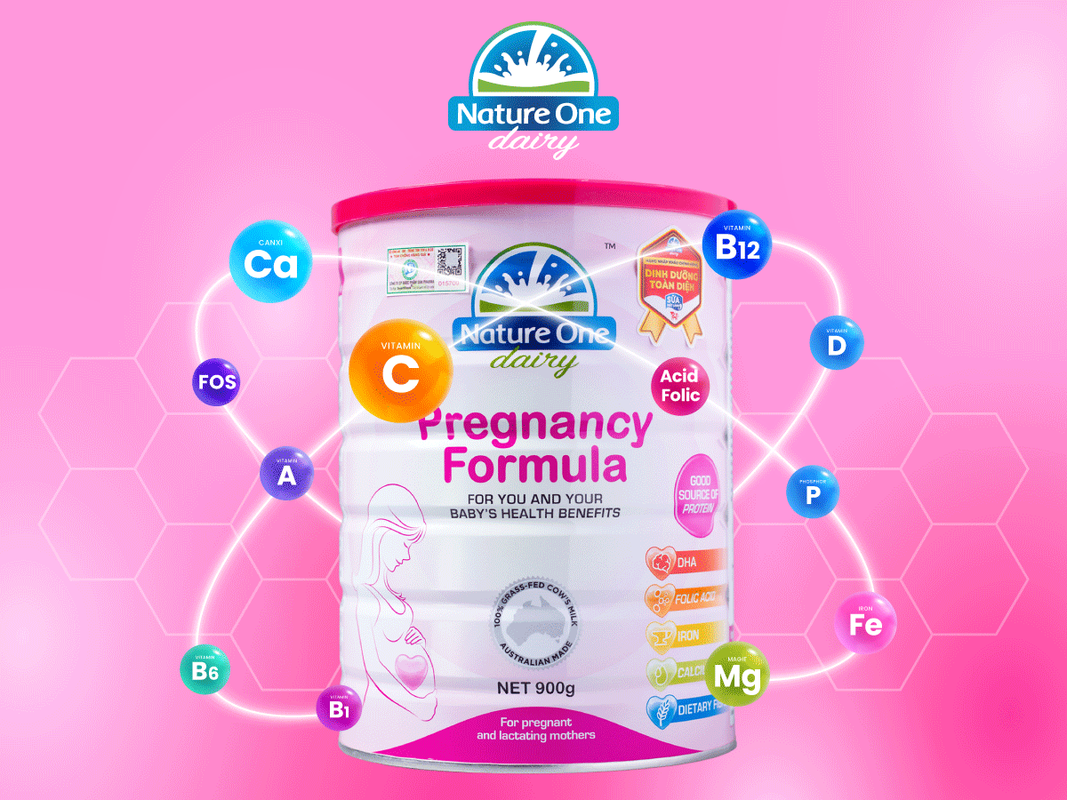 Nature One Dairy Pregnancy Formula được các chuyên gia của Nature’s One – thương hiệu sữa “quốc dân” của Úc nghiên cứu và sản xuất dựa trên nhu cầu dinh dưỡng của mẹ bầu trong suốt và sau thai kỳ. Sản phẩm cung cấp đến 23 loại vitamin và khoáng chất thiết yếu cần thiết như protein, năng lượng, các vitamin A, B1, B6, B12, C, D, canxi + phospho + magie, sắt… giúp cung cấp một chế độ dinh dưỡng đầy đủ, đáp ứng nhu cầu dinh dưỡng hàng ngày của mẹ bầu và thai nhi, đồng thời hỗ trợ tăng cường sức đề kháng cho mẹ bầu, giảm các triệu chứng thiếu máu, thiếu chất ở mẹ, giúp thai nhi phát triển toàn diện về cả thể chất và trí não, ngăn ngừa dị tật thai nhi.